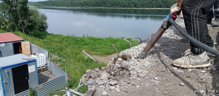 Бетоноломы или отбойные молотки служат для разрушения и дробления бетонных и кирпичных конструкций (перекрытий, стен, блоков). Оборудование более мощное, чем перфораторы, и применяется в строительстве для демонтажных работ по сносу и разрушению конструктивных элементов зданий, сооружений и бетонных строений (демонтаж асфальта, демонтаж стяжки, кирпичных и бетонных перегородок, плит перекрытий, отмосток, фундамента, деревянных конструкций).
